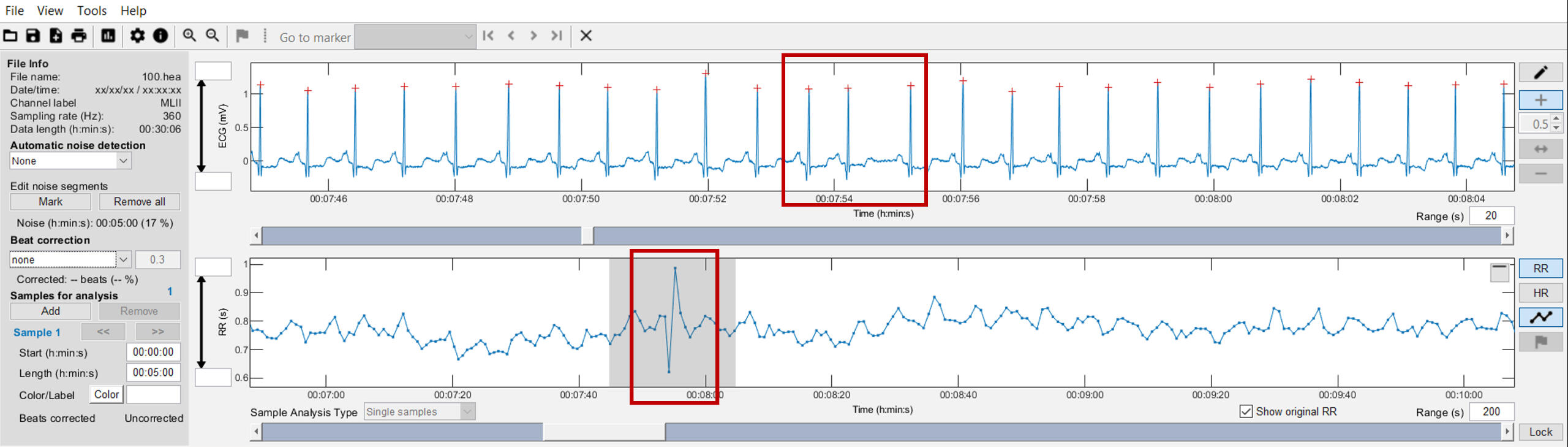 Further, three categories of RR interval detection errors based on comparison between RR intervals provided by software (red circles) and visual investigation of ECG signals from Rahel Gilgen-Ammann (2019, click on the picture):
