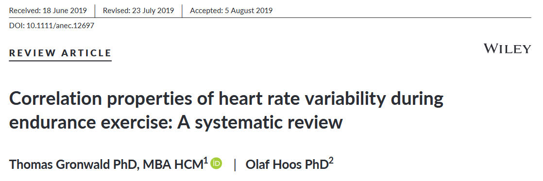 Gronwald, T., & Hoos, O. (2020). Correlation properties of heart rate variability during endurance exercise: A systematic review. Annals of Noninvasive Electrocardiology, 25(1), e12697. https://doi.org/10.1111/anec.12697