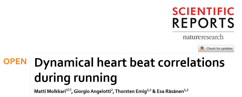 Molkkari, M., Angelotti, G., Emig, T., & Räsänen, E. (2020). Dynamical heart beat correlations during running. Scientific reports, 10(1), 13627. https://doi.org/10.1038/s41598-020-70358-7
