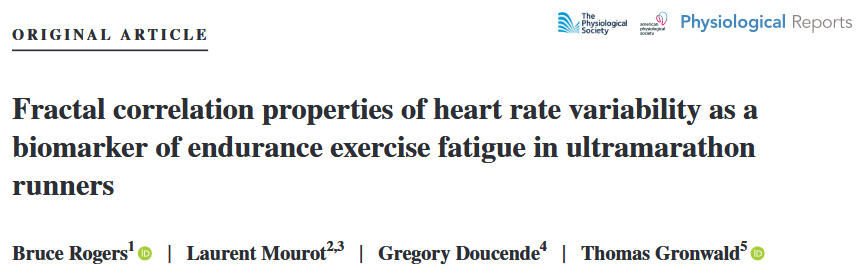 Rogers, B., Mourot, L., Doucende, G., & Gronwald, T. (2021). Fractal correlation properties of heart rate variability as a biomarker of endurance exercise fatigue in ultramarathon runners. Physiological Reports, 9(14), e14956. https://doi.org/10.14814/phy2.14956