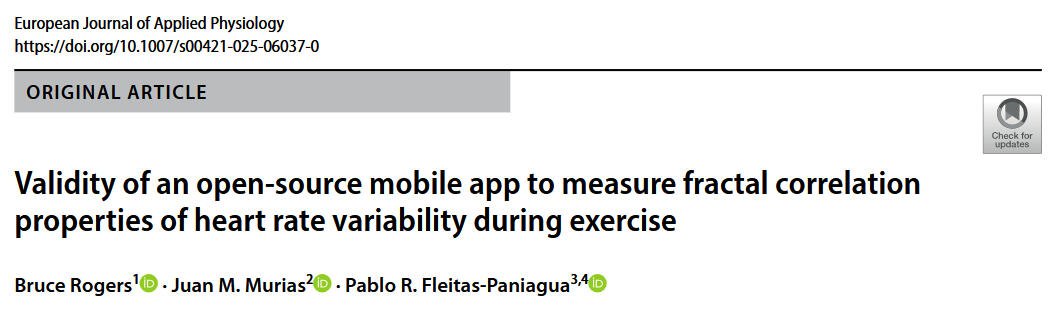 Rogers, B., Murias, J. M., & Fleitas-Paniagua, P. R. (2025). Validity of an open-source mobile app to measure fractal correlation properties of heart rate variability during exercise. European journal of applied physiology, 10.1007/s00421-025-06037-0. Advance online publication. https://doi.org/10.1007/s00421-025-06037-0